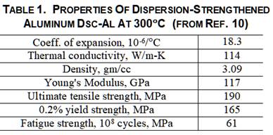 Table 1 gives some mechanical and thermal properties of DSC-Al at 300°C. There are other dispersion-strengthened materials, for example using iron nanoparticles, that are also interesting. Similar dispersion-strengthened materials have been considered in the past. However these new materials use nanometer-sized particles and appear capable of large scale production at reasonable cost.
